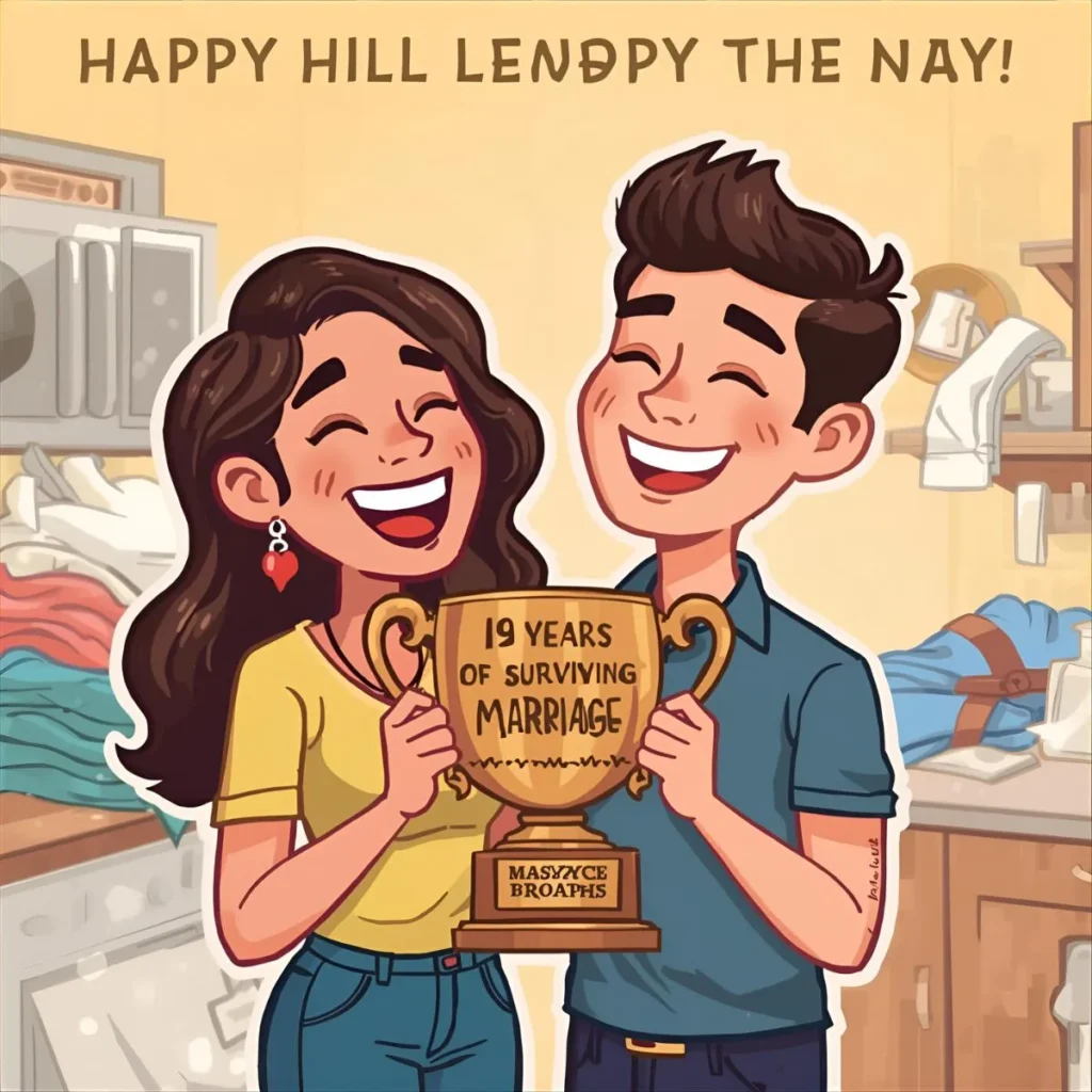 Lighten the mood on your 19th anniversary with humor that pokes fun at the quirks of long-term love. Bronze might be traditional, but laughter is timeless. These funny 19th anniversary wishes add a playful twist, ensuring smiles all around. Enjoy these 20 witty quips: