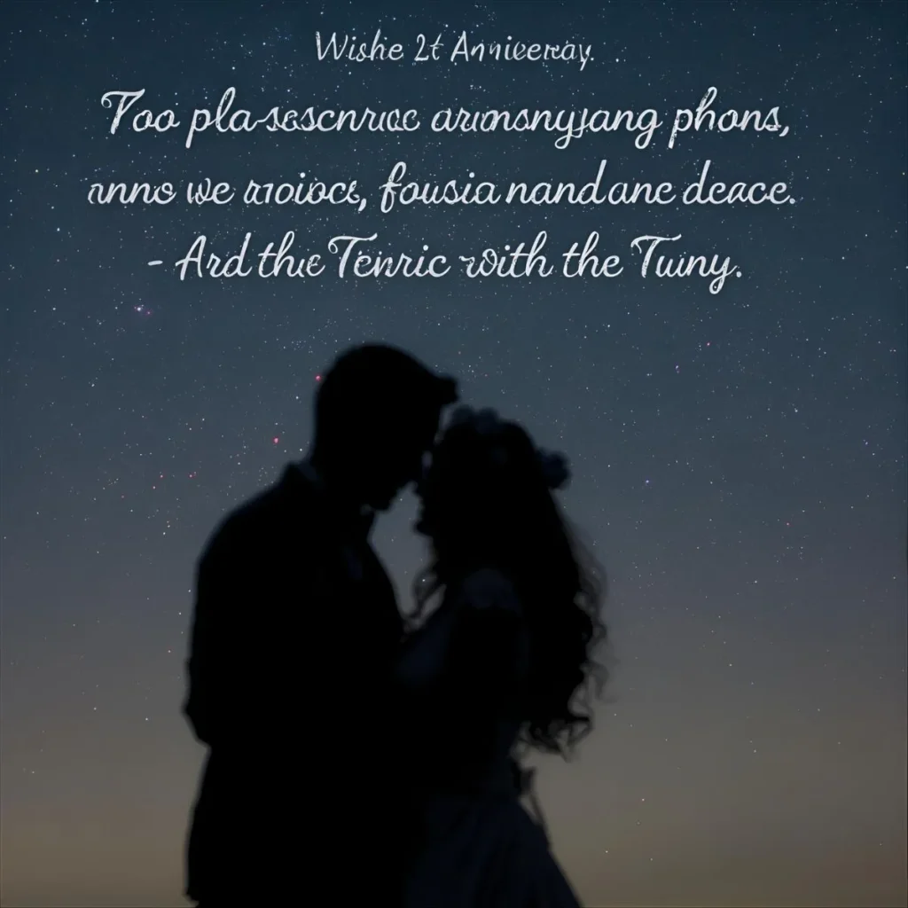 What are some romantic quotes for 2nd anniversary wishes? A quote like “Love weaves a beautiful tapestry” can be adapted: “Our 2nd anniversary marks two years of weaving our love story with threads of joy.” Use quotes that evoke warmth and connection.
