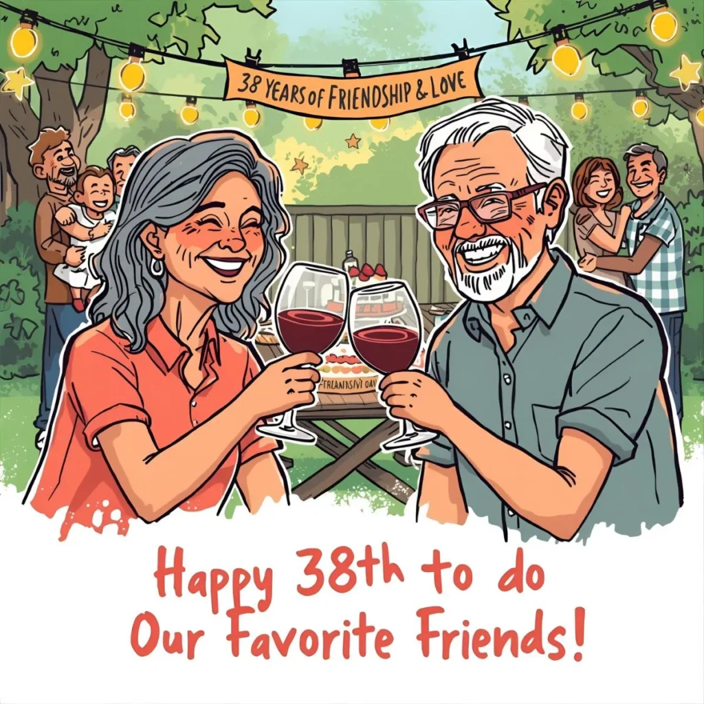 - To amazing friends: Celebrating your 38-year milestone with cheers.
