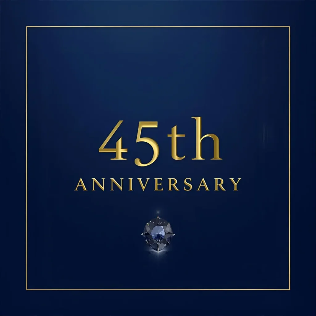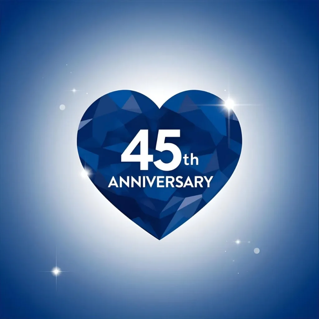 The 45th anniversary is known as the sapphire anniversary, symbolizing durability, wisdom, and deep love.