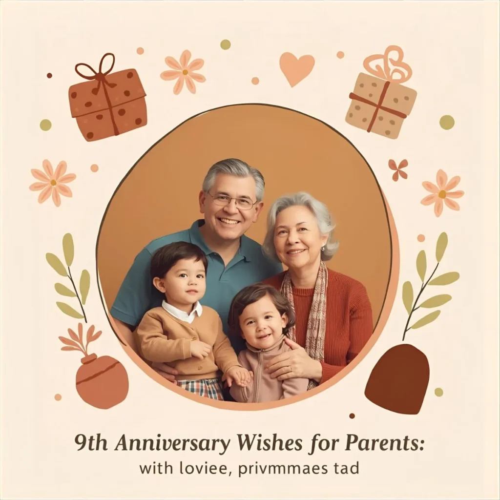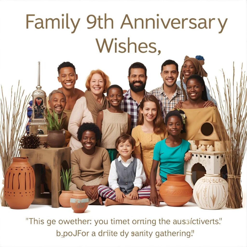 Family wishes emphasize unity. These inclusive 9th anniversary wishes suit siblings, in-laws, etc., with emotional variety for diverse families.
