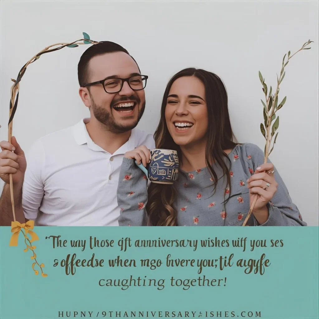 Humor keeps love light-hearted, especially after nine years of shared quirks and inside jokes. These funny 9th anniversary wishes poke fun at marriage in a loving, inclusive way, suitable for any couple. They’re short, witty, and easy to share, bringing smiles to your celebration.